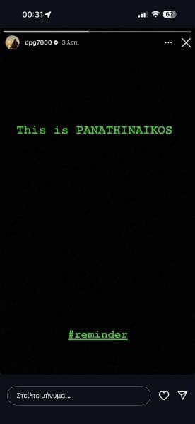 Συγκεκριμένα, στο μήνυμά που ανέβασε, έγραψε: «Εδώ είναι ΠΑΝΑΘΗΝΑΪΚΟΣ», συνοδεύοντας το με το hashtag #reminder.