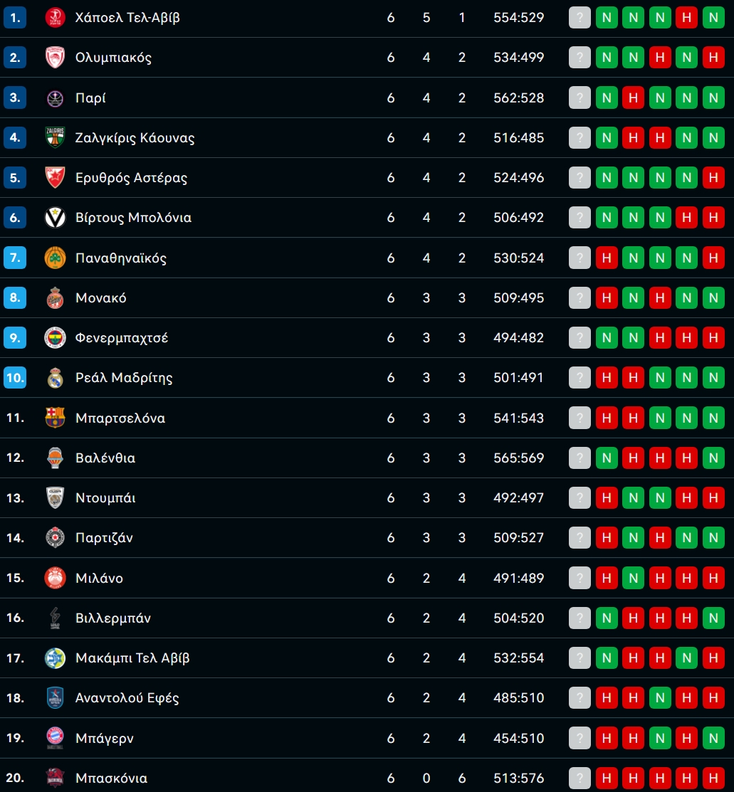 Η βαθμολογία της EuroLeague μετά από την νίκη του Ολυμπιακού επί της Μπάγερν!