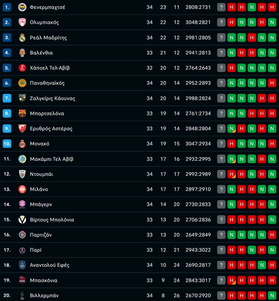 Η βαθμολογία της EuroLeague μετά από την νίκη του Παναθηναϊκού επί της Μονακό!