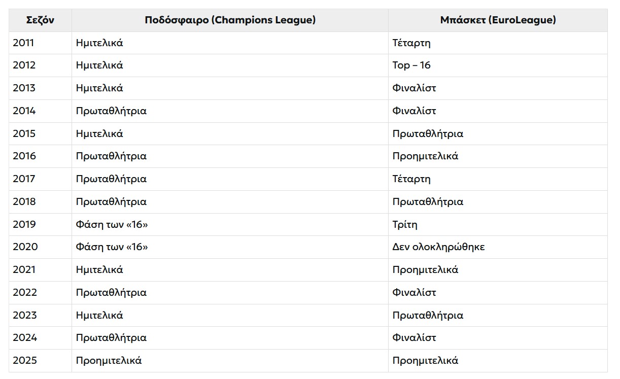 Από το 2011 μέχρι πέρσι, οι «μπλάνκος», έφταναν πάντα, είτε στους «4» του Τσάμπιονς Λιγκ, ή στο Final Four της EuroLeague, ή και στα δύο! Εξαίρεση η σεζόν 2019-20, όπου στο ποδόσφαιρο, η Ρεάλ έφτασε μέχρι τους «16» και στο μπάσκετ η σεζόν δεν ολοκληρώθηκε λόγω Covid.