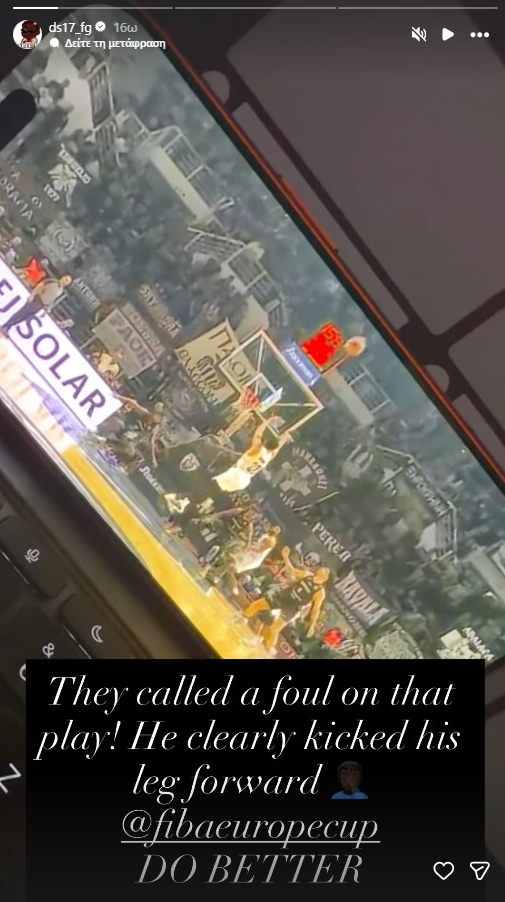 O Γερμανός σούπερ σταρ ξέσπασε διαμαρτυρόμενος για τη φάση 15 δευτερόλεπτα πριν το τέλος, όπου ο Μπράουν κέρδισε 3 βολές για να δώσει το προβάδισμα στον ΠΑΟΚ, γράφοντας ότι ότι υπάρχει φάουλ από τον Αμερικανό γκαρντ, καθώς απλώνει το πόδι του.