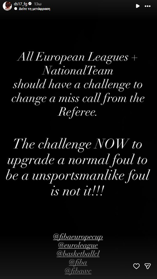 Μάλιστα μετά δημοσίευσε άλλο ένα story, στο οποίο αναφέρει ότι ο τρέχων κανονισμός για τα challenge δεν είναι σωστός και κάθε ομάδα θα έπρεπε να έχει ένα που μπορεί να αλλάξει λανθασμένη απόφαση των διαιτητών.