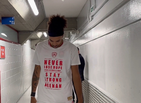 Όλοι οι παίκτες των ερυθρολεύκων φορούσαν από ένα σπέσιαλ μπλουζάκι που έγραφε πάνω: “Μην χάνεις ποτέ την ελπίδα σου. Υπάρχει πάντα ένας τρόπος. Μείνε δυνατός Κίναν”.