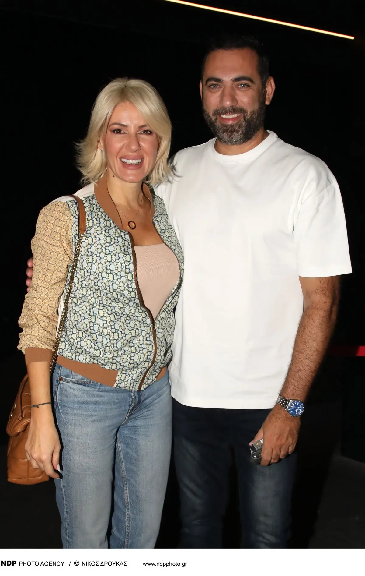 Η Μπέττυ Μαγγίρα έκανε μία πολύ κομψή και εντυπωσιακή εμφάνιση, όπως πάντα, με ένα μαύρο φόρεμα, στενό, με άνοιγμα στο στήθος, μαύρα ψηλοτάκουνα πέδιλα, ολοκληρώνοντας το look της με ένα μαύρο σακάκι και μία μικρή τσάντα στα χέρια της. Ο καλός της, από την άλλη πλευρά, επέλεξε γκρι τζιν, καστόρινα παπούτσια και ένα μαύρο δερμάτινο μπουφάν, φορώντας από μέσα ένα γκρι t-shirt.