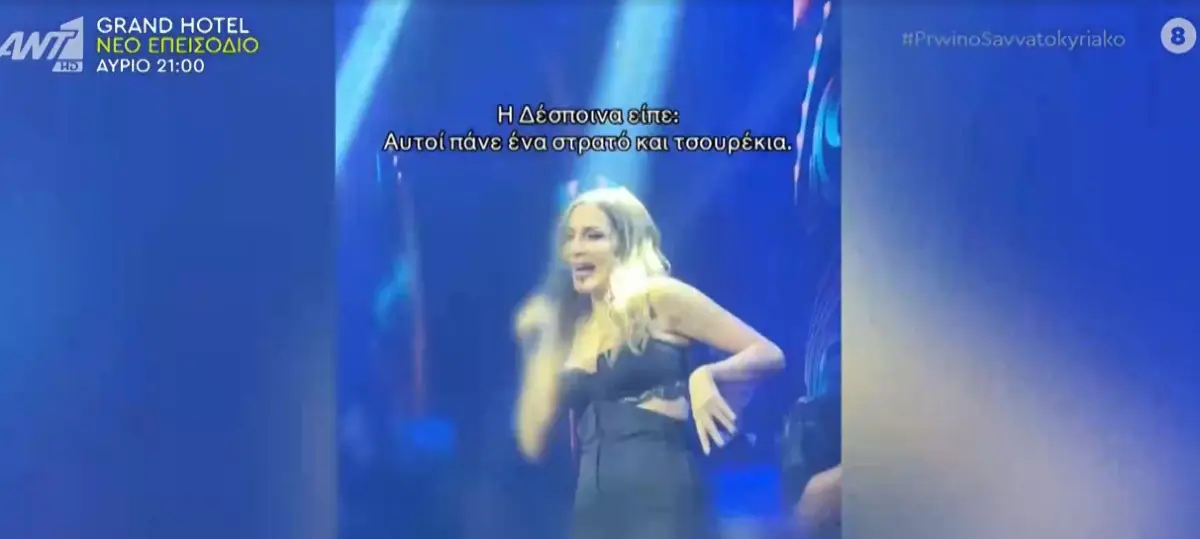 Η Δέσποινα Βανδή βρέθηκε ξανά στη Θεσσαλονίκη, με αφορμή τις μουσικές εμφανίσεις που έχει ξεκινήσει εδώ και λίγο καιρό σε γνωστό νυχτερινό κέντρο στη συμπρωτεύουσα. Το πρωί της Κυριακής (12/10), μάλιστα, προβλήθηκε ένα βίντεο από τη χτεσινή της εμφάνιση στην εκπομπή Πρωινό Σαββατοκύριακο, στο οποίο η τραγουδίστρια ακούγεται να λέει μια όλο νόημα ατάκα, την οποία στο πλατό τη συνέδεσαν με όλη αυτήν περιπέτεια που είχε τις προηγούμενες ημέρες με το τροχαίο που προκάλεσε στη Φιλοθέη.