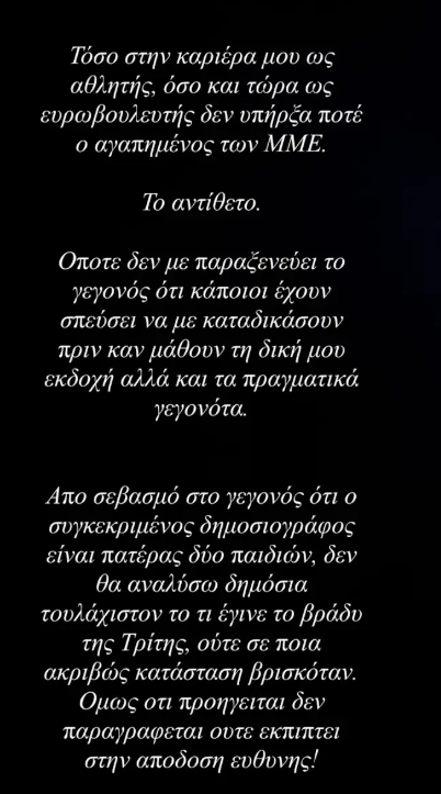 «Τόσο στην καριέρα μου ως αθλητής, όσο και τώρα ως ευρωβουλευτής δεν υπήρξα ποτέ ο αγαπημένος των ΜΜΕ. Το αντίθετο.