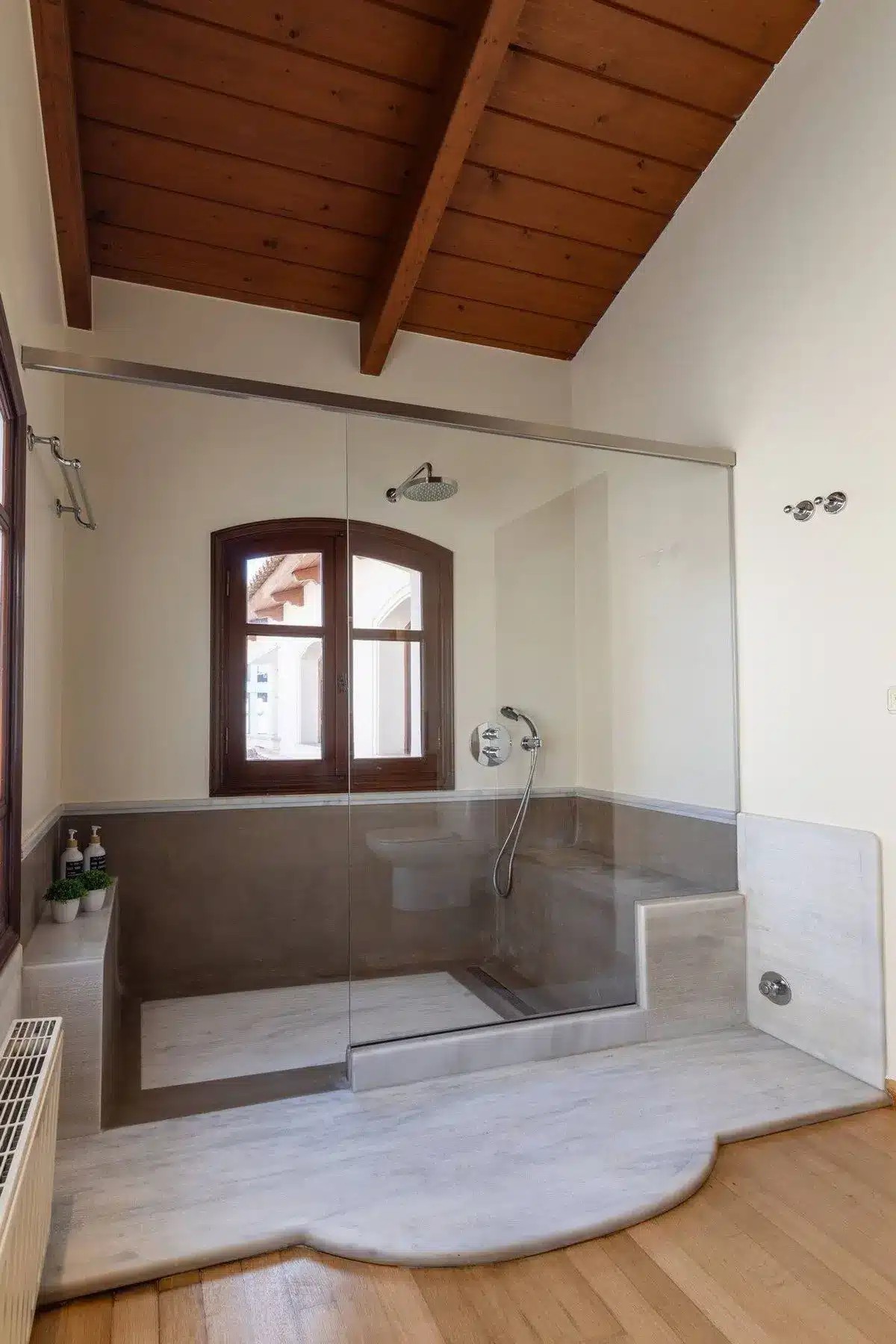 Πρόκειται για μια μονοκατοικία 320 τ.μ., τετραώροφη, που χτίστηκε το 1998. Το εσωτερικό διαθέτει θερμαινόμενη εσωτερική πισίνα, ένα πολυτελές στοιχείο που — ειδικά για το κέντρο της Αθήνας — προσδίδει έναν χαρακτήρα πραγματικής κατοικίας-καταφυγίου.