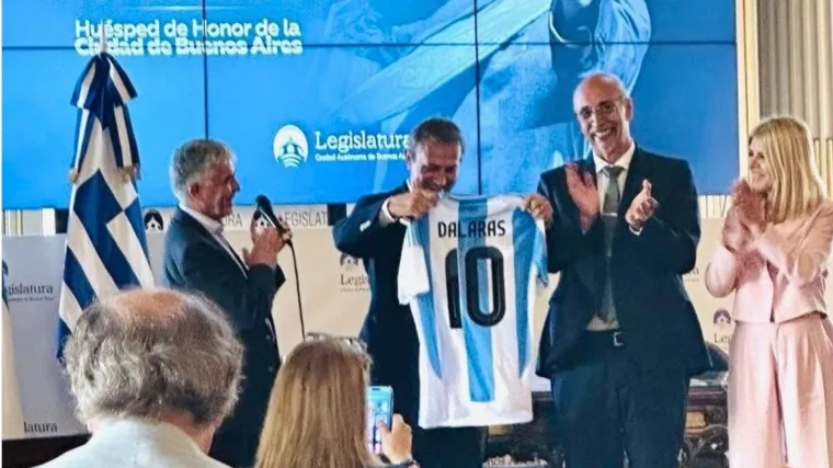 Σύμφωνα με ανακοίνωση της Ελληνικής Κοινότητας Μπουένος Άιρες (Asosiacion Colectividad Helenica de Buenos Aires), ο Γιώργος Νταλάρας βραβεύτηκε με τον τίτλο του “διακεκριμένου πολίτη” της πρωτεύουσας, στο δημαρχείο, όπου του δόθηκε ως δώρο μια φανέλα της “αλμπισελέστε” με το νούμερο 10 και το επώνυμό του από πάνω.