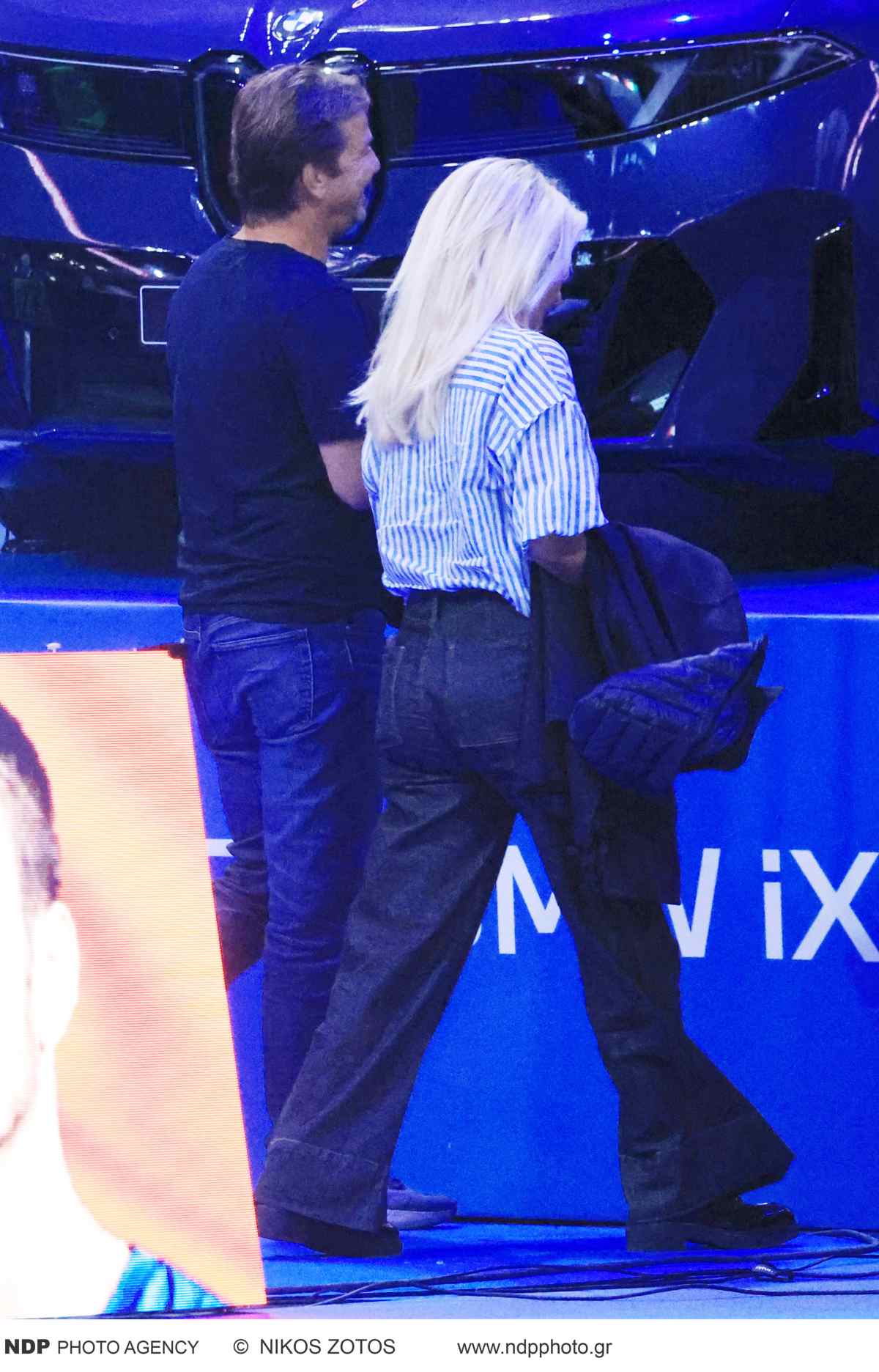 Η Ελένη Μενεγάκη και ο Ματέο Παντζόπουλος στο γήπεδο