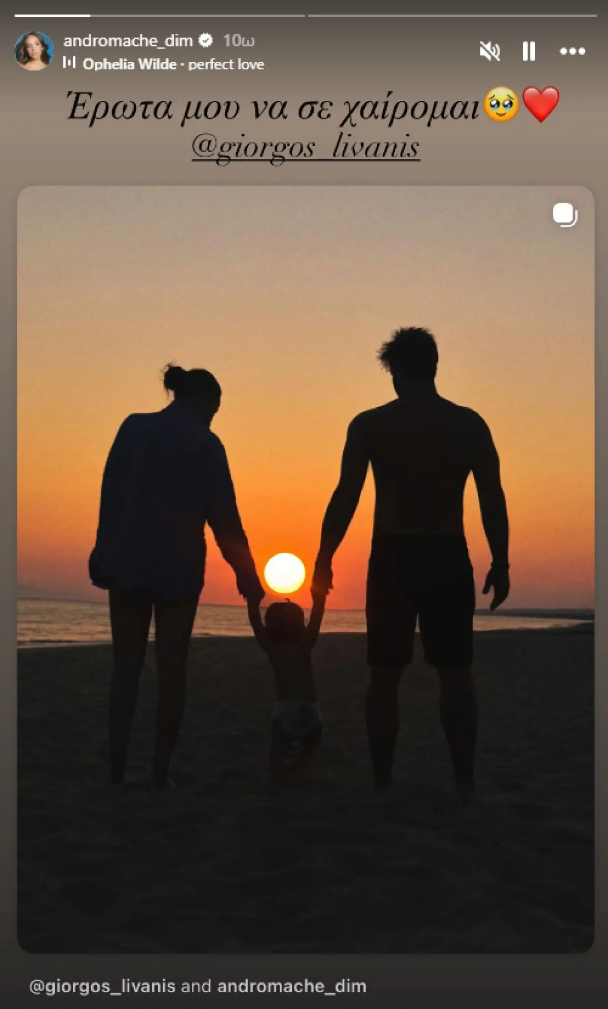 Δημοσίευσε σε story μία φωτογραφία από το καλοκαίρι που πέρασε, όπου περπατούσε μπροστά από το ηλιοβασίλεμα χέρι χέρι με τον γιο της και τον αγαπημένο της, στην παραλία, και χωρίς να πει πολλά, εξέφρασε τον έρωτά της για εκείνον.