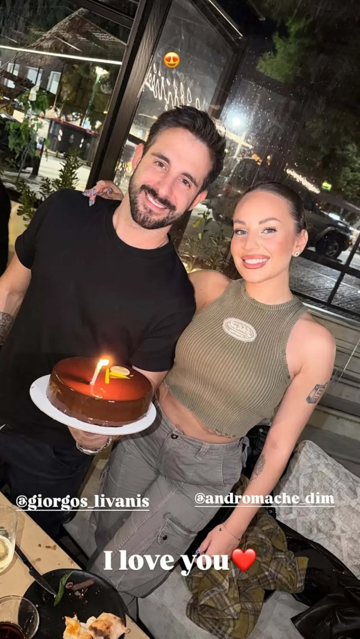 Στη συνέχεια, δημοσίευσε ένα ακόμη story στο προφίλ της, από την βραδινή τους έξοδο, όπου ο τραγουδιστής έσβησε και την τούρτα με τα κεράκια του, έχοντας δίπλα του πολλά από τα αγαπημένα του πρόσωπα.