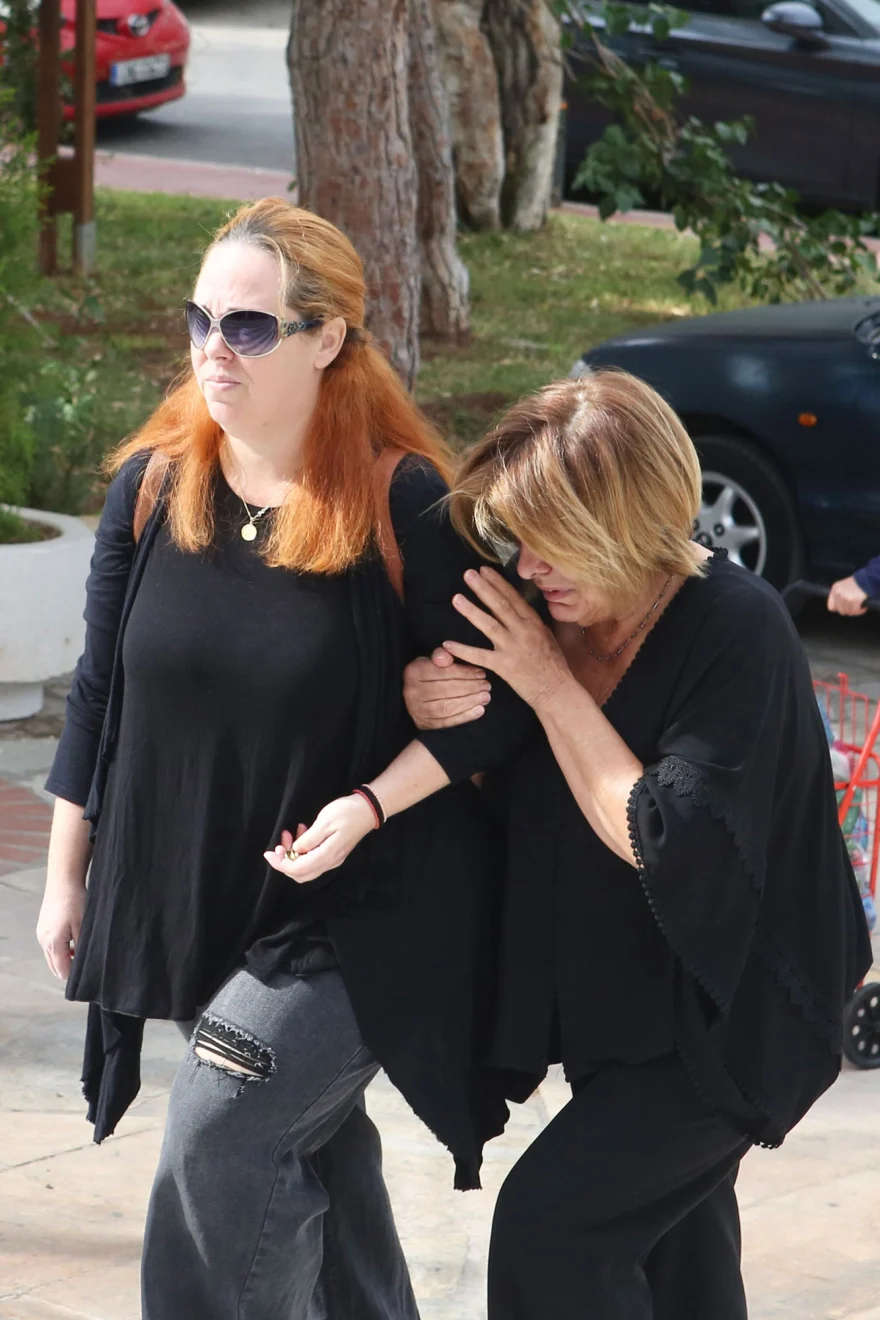 Στον προαύλιο χώρο της εκκλησίας έφτασε υποβασταζόμενη από την ανιψιά της, η επί 25 χρόνια σύντροφός του, Κατερίνα.