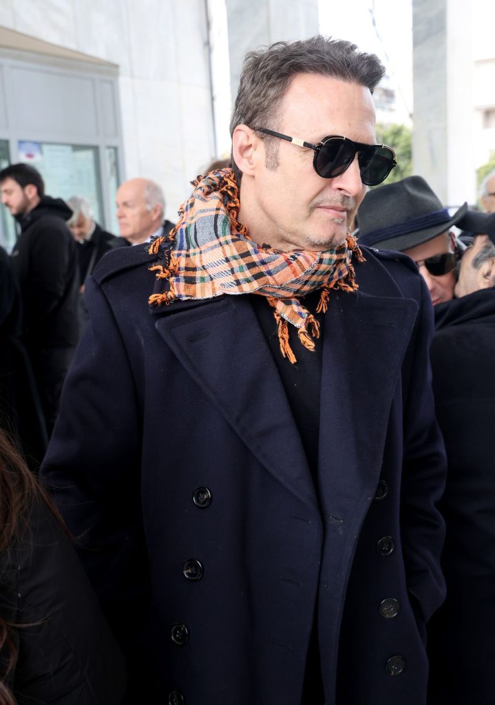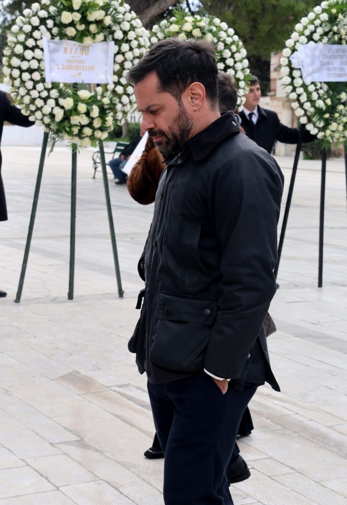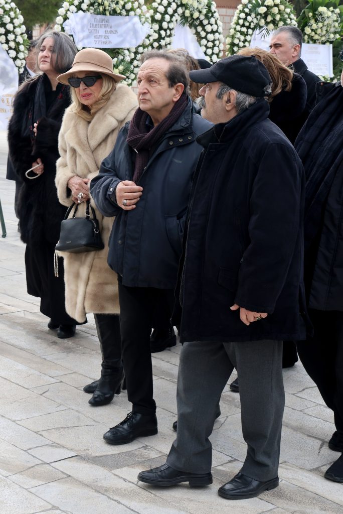 Η Άννα Φόνσου, ο Σπύρος Μπιμπίλας και ο πολυαγαπημένος της γιος, Αλέξανδρος Παγουλάτος, απαθανατίστηκαν -μεταξύ άλλων- συγκινημένοι από τον φακό, σήμερα 20/1, στην κηδεία της.