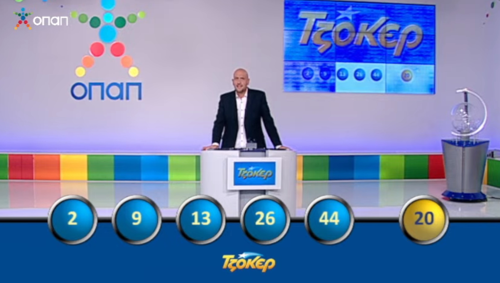 Οι τυχεροί αριθμοί που ανέδειξε η αποψινή κληρωτίδα είναι οι: 2 , 9 , 13 , 26 , 44 και αριθμός Τζόκερ το 20.