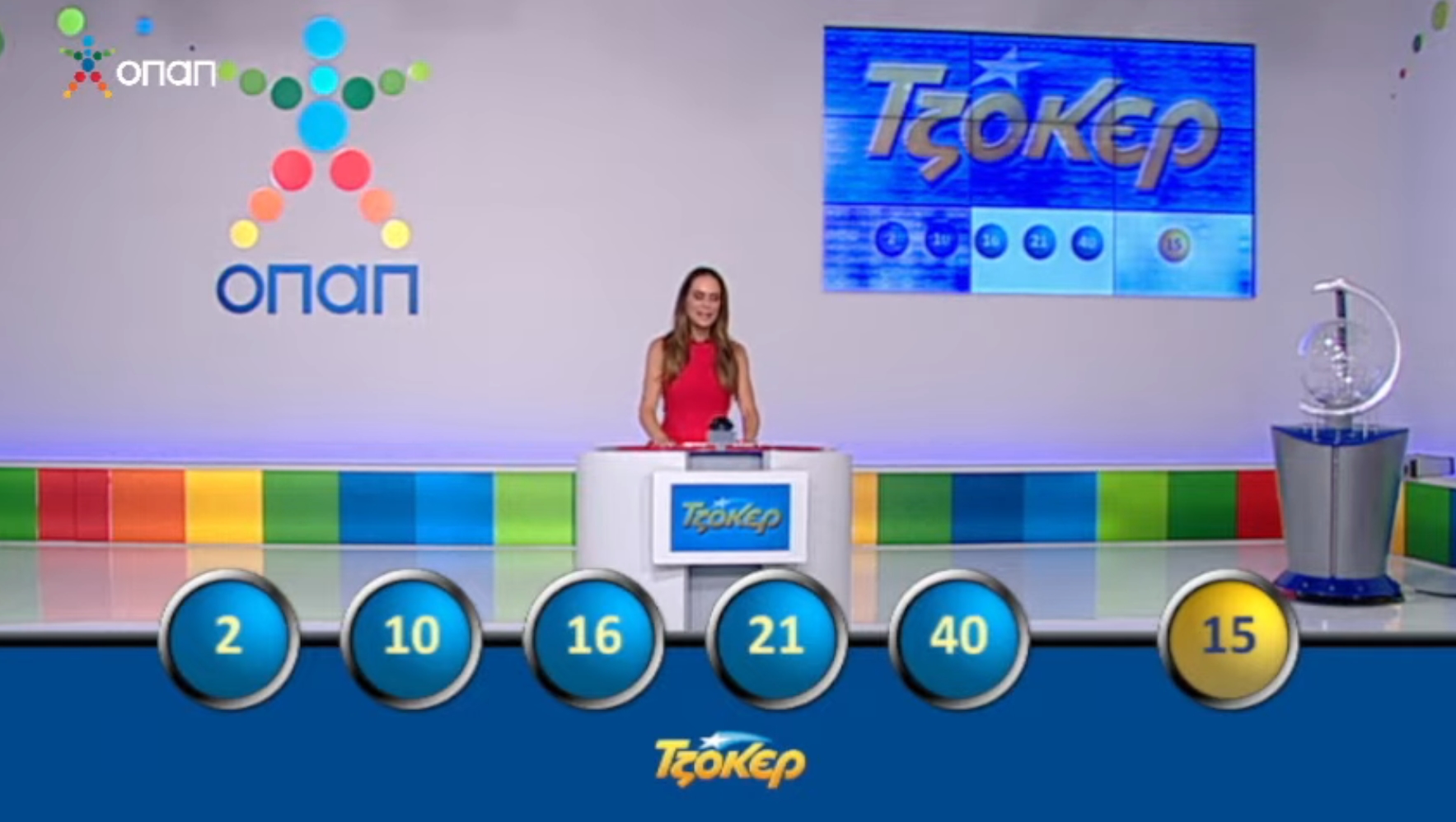 Οι τυχεροί αριθμοί που ανέδειξε η αποψινή κληρωτίδα είναι οι: 2, 10, 16, 21, 40 και αριθμός Τζόκερ το 15.