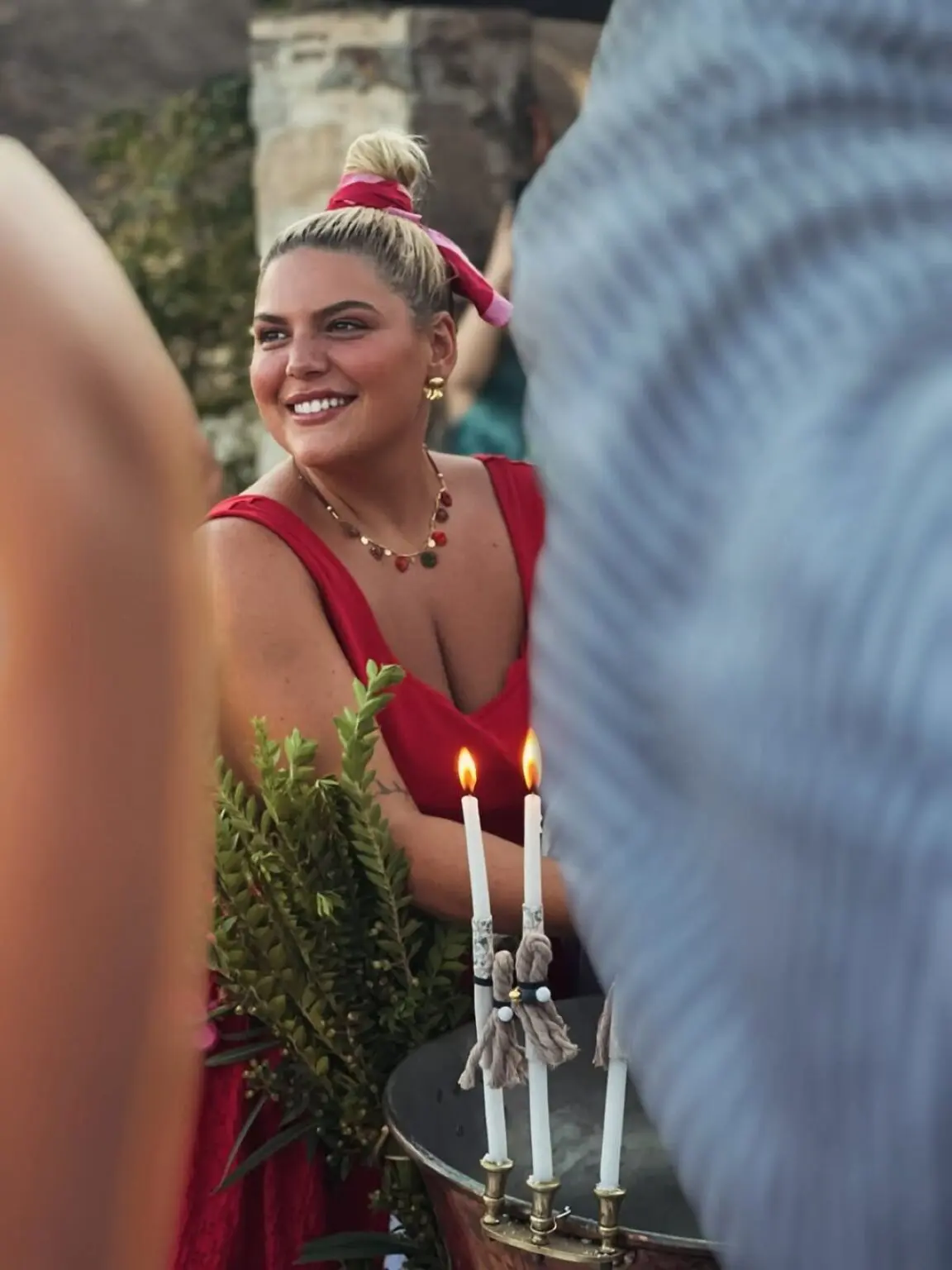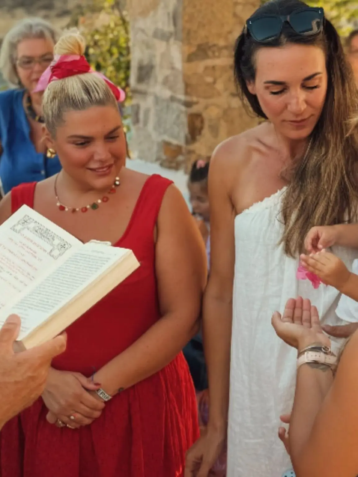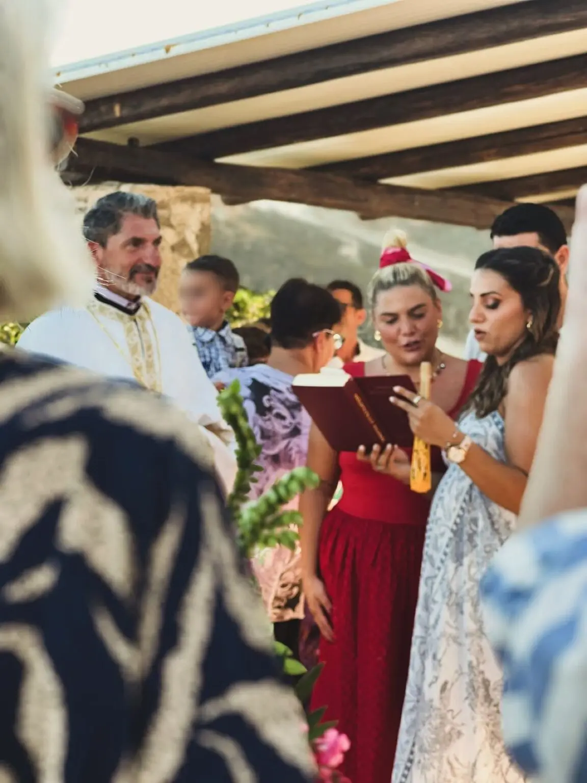 Η ίδια περιέγραψε το σκηνικό, καθώς και τον αυθόρμητο χαρακτήρα της βάφτισης: «Με φίλους, με οικογένεια, με μαγιό μέσα απ’ τα ρούχα, με οργάνωση μιας εβδομάδας, με έναν τρελό μπαμπά και μια κούκλα μαμά. Και τ’ όνομα αυτού… Έρως».