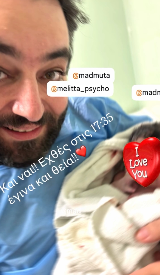 Στα Instagram stories που δημοσίευσε, βλέπουμε τον Κωνσταντίνο Μουταφτσή χαμογελαστό μέσα στο μαιευτήριο, ενώ κρατάει στην αγκαλιά του το νεογέννητο μωρό, τυλιγμένο σε μια ζεστή κουβέρτα. Στη φωτογραφία, η ηθοποιός δεν έκρυψε την αγάπη της, γράφοντας απλά: «I love you».