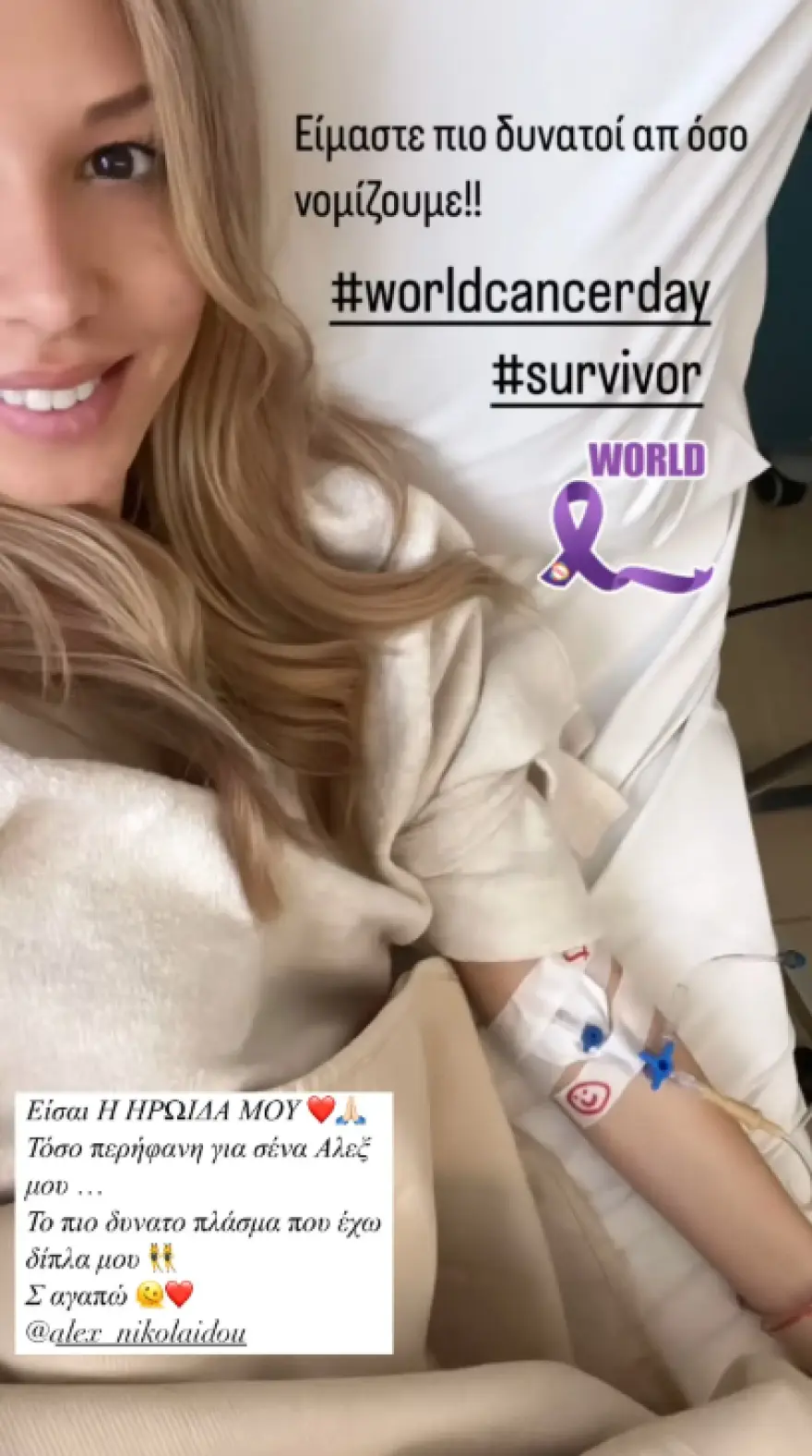 Η ίδια είχε αποκαλύψει τη μάχη που έδινε με τον καρκίνο του μαστού σε ανάρτησή της στις αρχές του χρόνου, ενώ ο σύντροφός της Ντέμης Νικολαΐδης στεκόταν διαρκώς δίπλα της στη διάρκεια του αγώνα της.