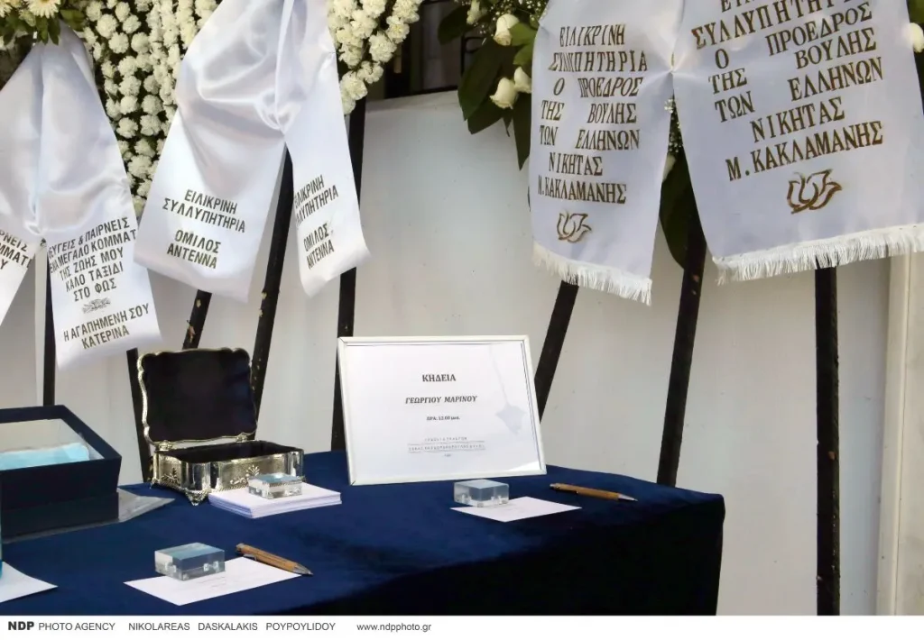 Το στεφανίδι της Κατιάνας Μπαλανίκα στην κηδεία του Γιώργου Μαρίνου