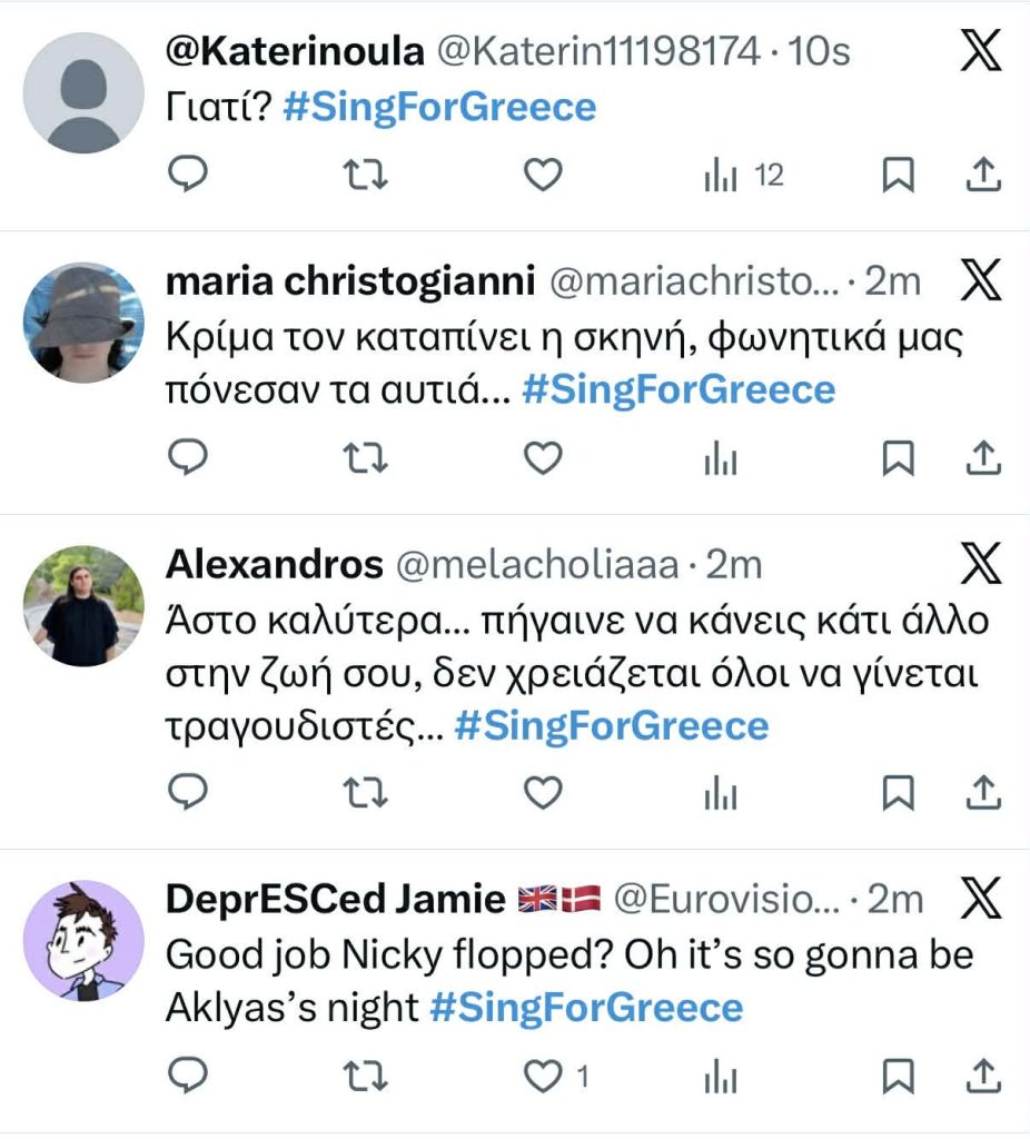 Αρκετοί χρήστες του X παρατήρησαν την κίνηση του τραγουδιστή και εξέφρασαν διαφορετικές απόψεις. Δεν ήταν λίγοι εκείνοι που επεσήμαναν ότι πιθανώς ο Good Job Nicky έκανε αυτή την κίνηση για να έχει δικαιολογημένα παράπονα μετά για τον ήχο. Αρκετοί, βέβαια, ανέφεραν ότι η ερμηνεία του τραγουδιστή δεν ήταν ανάλογη του επιπέδου της Eurovision.