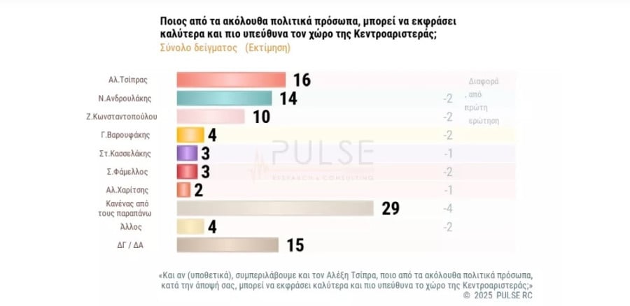 Ιδιαίτερο ενδιαφέρον παρουσιάζουν τα ευρήματα της νέας δημοσκόπησης της Pulse για τον ΣΚΑΙ, που επιχειρεί να «μετρήσει» ποιος πολιτικός ηγέτης μπορεί να εκφράσει με πιο υπεύθυνο τρόπο τον χώρο της κεντροαριστεράς.