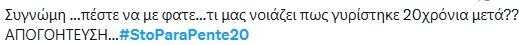 Το πιο αναμενόμενο και νοσταλγικό reunion της ελληνικής τηλεόρασης, το «Στο Παρά Πέντε – 20 Χρόνια Μετά», είναι στις οθόνες μας.