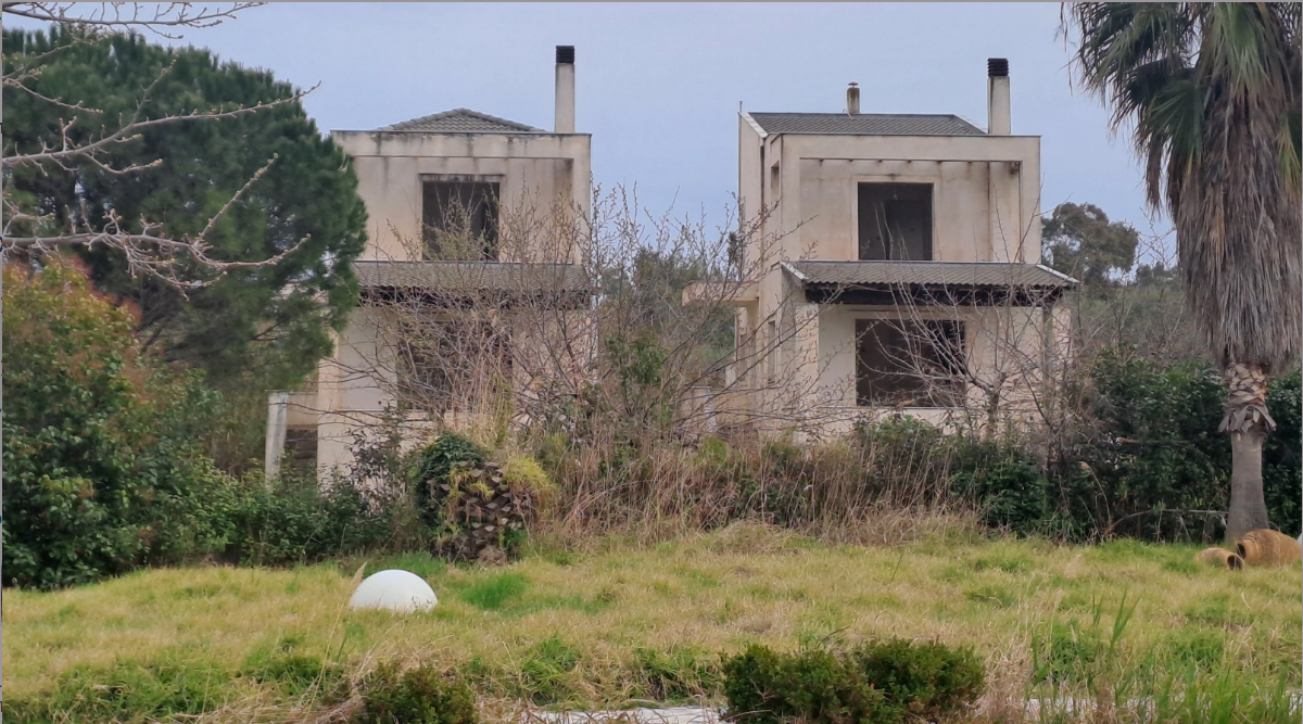 Επιπλέον, κατά την εξωτερική αυτοψία, διαπιστώθηκε ότι οι δύο διώροφες κατοικίες (με υπόγειο) βρίσκονται στο ανατολικό τμήμα του οικοπέδου και, στην παρούσα φάση, είναι ημιτελείς, με την κτιριακή τους ετοιμότητα να θεωρείται ότι βρίσκεται στο 40%. Η τιμή πρώτης προσφοράς για το εν λόγω ακίνητο έχει οριστεί στις 593.100 ευρώ.