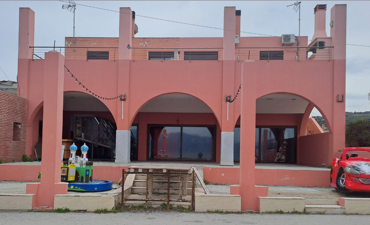 Σύμφωνα με την εξωτερική αυτοψία, πρόκειται για διώροφη οικοδομή, δύο διώροφες κατοικίες με υπόγειο (ημιτελείς) τυπικής κατασκευής με σκελετό από οπλισμένο σκυρόδεμα και πισίνα εντός του παραπάνω οικοπέδου. Η διώροφη οικοδομή βρίσκεται στο νοτιοδυτικό τμήμα του οικοπέδου, είναι σε καλή κατάσταση συντήρησης και διαθέτει εύκολη πρόσβαση τόσο από το βόρειο τμήμα (αιγιαλό) όσο και από το δυτικό. Βόρεια της διώροφης οικοδομής εντοπίζεται η πισίνα εμβαδού 85 τ.μ. ενώ, ενώ νότια βρίσκεται κτίσμα πρόχειρης κατασκευής που εξυπηρετεί την στάθμευση αυτοκινήτων.