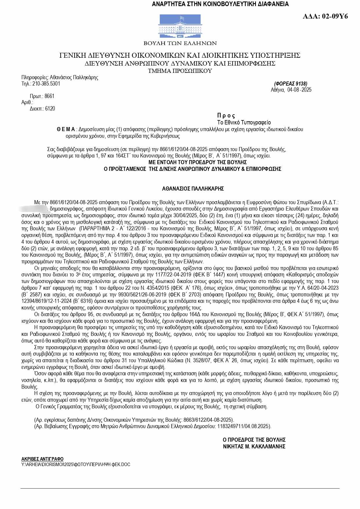 Με ποια κριτήρια επιλέχτηκε; Δεν είναι λίγοι όσοι ξαφνιάζονται όταν ακούν ότι η ίδια θα καταφέρνει να εργάζεται ταυτόχρονα και σε ιδιωτικό κανάλι, και σε δημόσιο. Μάλιστα, σύμφωνα με τα επίσημα έγγραφα που έχουν αναρτηθεί στη Διαύγεια, από το καλοκαίρι που έγινε η πρόσληψή της, η παρουσία της στο Κανάλι της Βουλής είναι απολύτως κατοχυρωμένη, με όλες τις νόμιμες προϋποθέσεις και τις διαδικασίες που πρέπει να πληροί μια δημοσιογράφος προκειμένου να έχει αυτή τη διπλή επαγγελματική δραστηριότητα.