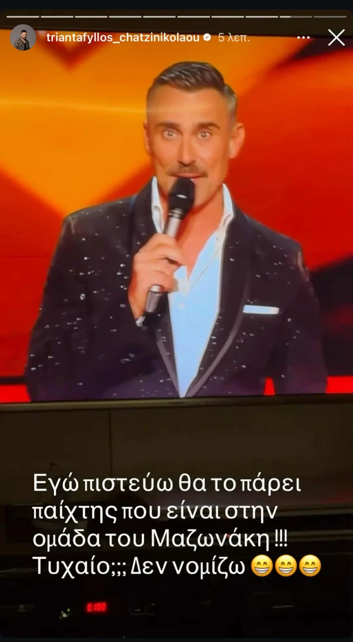 «Εγώ πιστεύω θα το πάρει παίχτης που είναι στην ομάδα του Μαζωνάκη!!! Τυχαίο;;; Δεν νομίζω 😁😁😁».