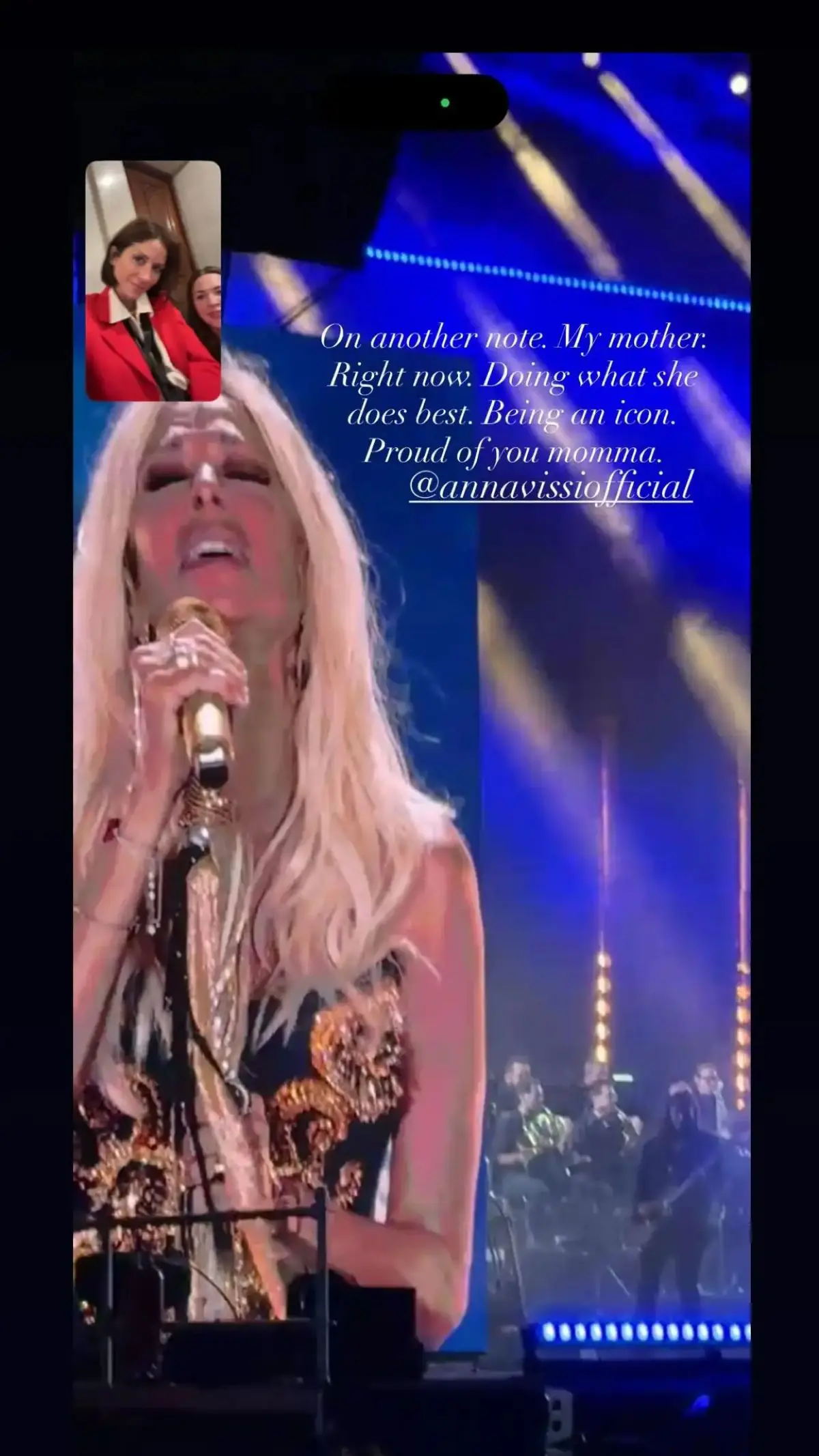 Με βιντεοκλήση σε άτομο που βρισκόταν στο στάδιο, αλλά και με ανάρτησή της στα social media, έγραψε: «Σε άλλα νέα, η μητέρα μου, αυτή τη στιγμή. Κάνοντας αυτό που κάνει καλύτερα, να είναι ένα είδωλο. Περήφανη για σένα μαμά!».
