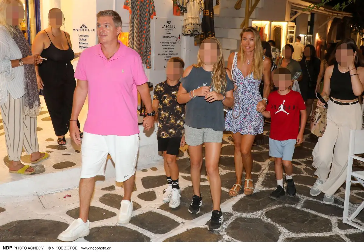 Πατρίκιος και πριγκίπισσα… Ο Λεό Πατίτσας με τη Μαριέττα Χρουσαλά και τα παιδιά τους, μας έδωσαν οικογενειακή λάμψη. Εκείνος casual με ροζ polo (επιλέγει πάντα τον ρόλο του διακριτικού), ενώ η Μαριέττα έλαμψε με λουλουδάτο φόρεμα και το χαμόγελο της Disney princess. Τα παιδιά πιο cool απ’ όλους.