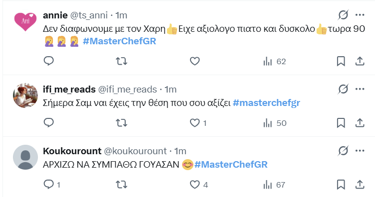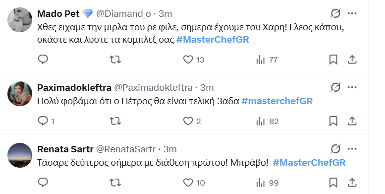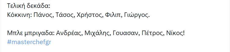 Όμως αυτό που μονοπώλησε μία ομάδα φανς του MasterChef στο Χ, ήταν το spoiler που αφορά στην τελική δεκάδα του διαγωνισμού.