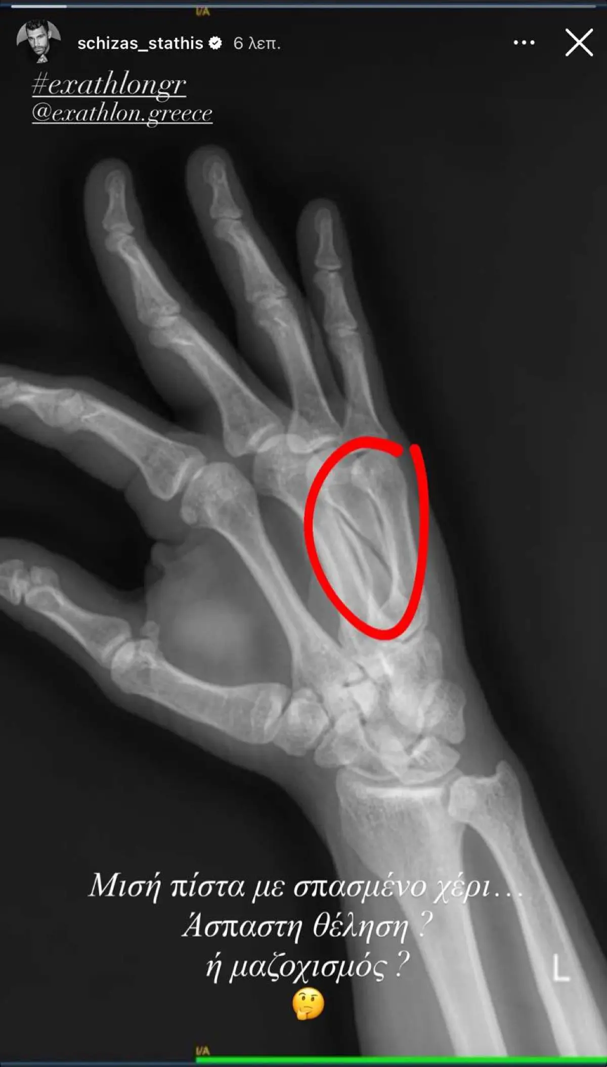 Η ακτινογραφία του Στάθη Σχίζα με τον σπασμένο του χέρι