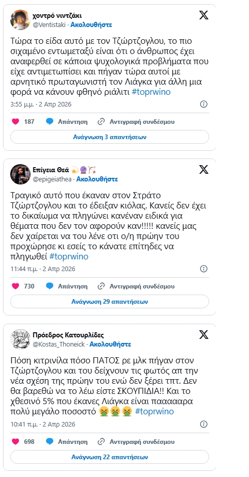 Οντως ειναι αβολο! Ο Τζωρτζογλου το αντιμετώπισε με απόλυτη αξιοπρέπεια,εσυ και καλά έπεσες απο τα συννεφα.. Στη συσκεψη πριν απο την εκπομπή δεν ήξερες οτι θα παίξει αυτο το βίντεο? Ντραπηκε και η ντροπή…#toprwino #λιαγκας pic.twitter.com/mDQ7Kl1WOQ