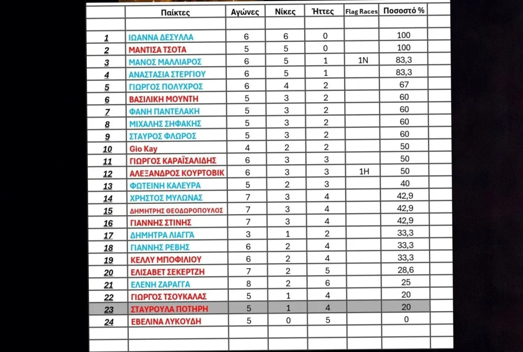 Στην πεντάδα είναι η μόνη από τους Αθηναίους που είναι ψηλά, ενώ σχετικά ψηλά είναι και η Βασιλική Μουντή από την κόκκινη ομάδα. Στα υπόλοιπα… όλα μπλε.