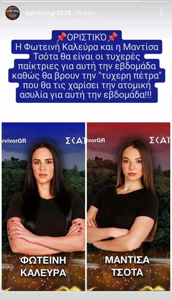 Μπαίνουμε στην 3η εβδομάδα στο Survivor 2026 και αυτή ξεκινά με κάτι καινούργιο. Αυτό έχει να κάνει με την ατομική ασυλία που θα έχει ένας παίκτης από κάθε ομάδα. Ένας από τους Αθηναίους κι ένας από τους Επαρχιώτες.