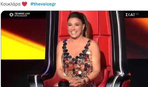 Η αγαπημένη coach εμφανίστηκε στη σκηνή με ένα εντυπωσιακό μίνι φόρεμα, κεντημένο με χρυσές πούλιες, που ανέδειξε τη θηλυκότητα και τη σκηνική της παρουσία με τον πιο λαμπερό τρόπο.