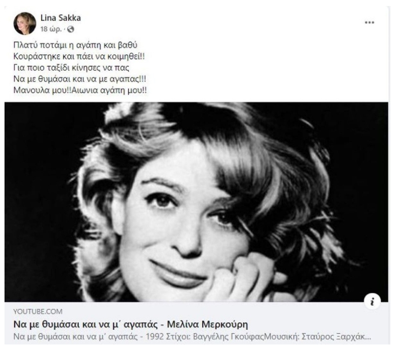 Η ανάρτηση της Λίνας Σακκά που συγκινεί