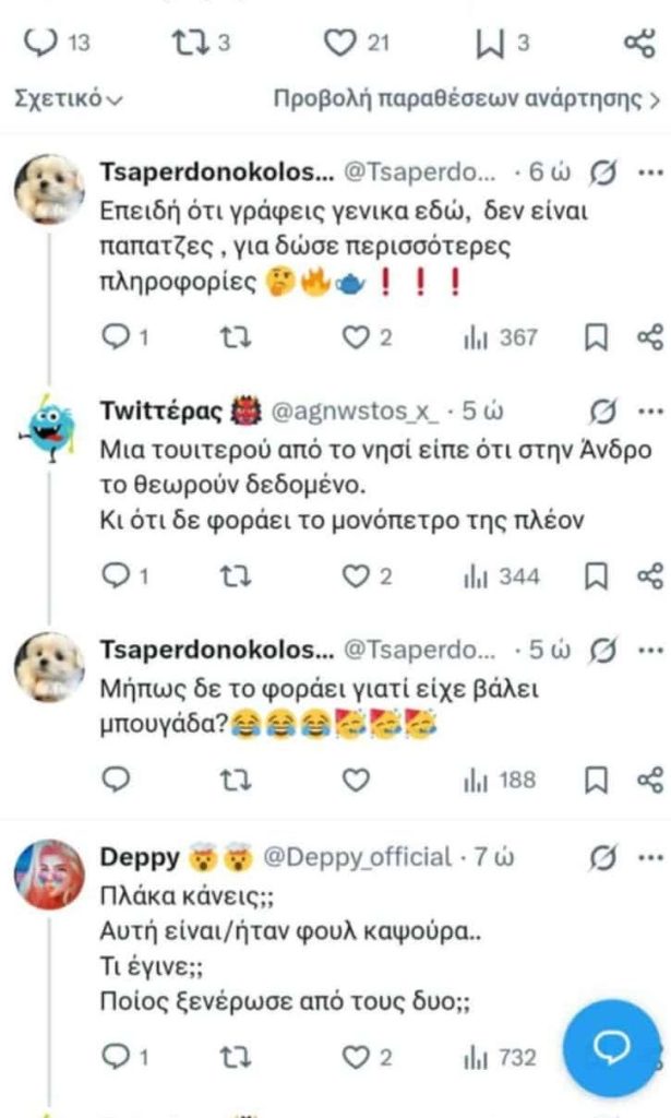 «Το γνωρίζει όλη η Άνδρος!» - Τι αποκάλυψαν για Μενεγάκη-Παντζόπουλο στο Twitter/X