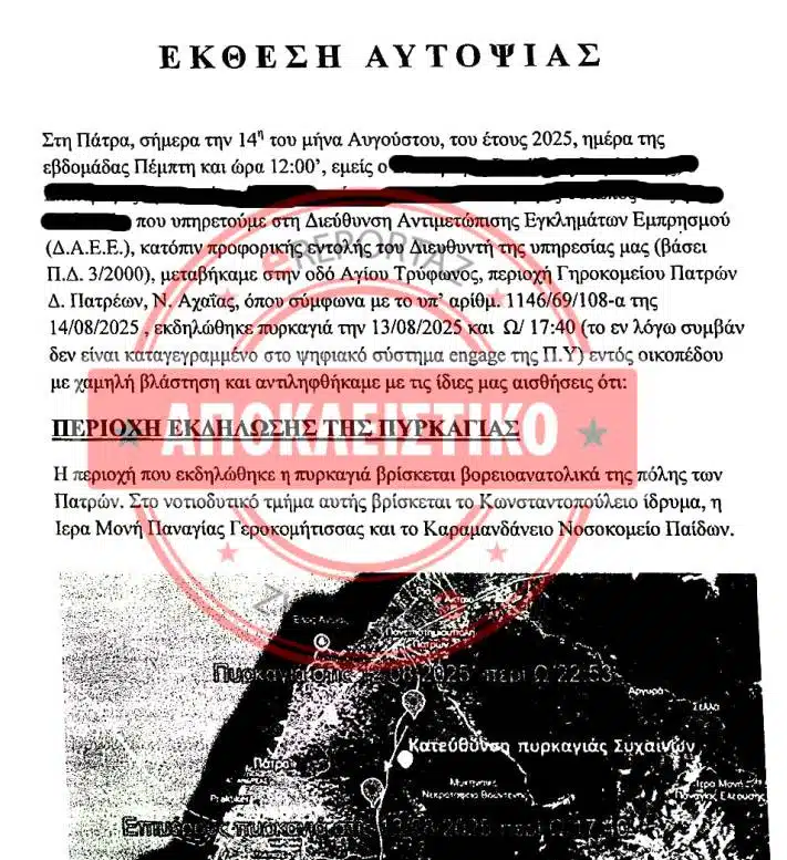 Τούμπα όλα για την φωτιά στην Πάτρα – Ανατρέπει τα πάντα η έκθεση Πυροσβεστικής, δεν ήταν εμπρnσμός, ξεκίνησε από…