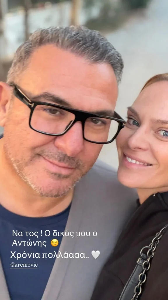 Η σχεδιάστρια μόδας, που βρίσκεται στο πλευρό του τραγουδιστή από το 2010 και παντρεύτηκαν το 2018, μοιράστηκε μια κοινή τους φωτογραφία στα social media συνοδευόμενη από ένα σύντομο μήνυμα αγάπης: «Να τος. Ο δικός μου ο Αντώνης. Χρόνια Πολλά».