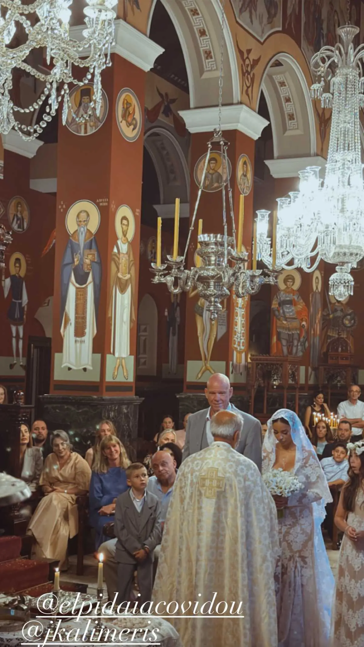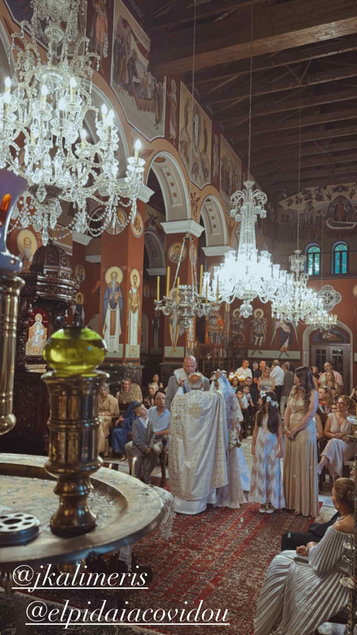 Μια από τις καλεσμένες τους ανέβασε στον προσωπικό της λογαριασμό στο Instagram ένα βίντεο από τον γάμο, όπου βλέπουμε την Ελπίδα Ιακωβίδου με το υπέρλαμπρο νυφικό της να φτάνει στην εκκλησία και στον εκλεκτό της καρδιάς της, ο οποίος την περίμενε συγκινημένος με ένα μπουκέτο λουλούδια στα χέρια του.