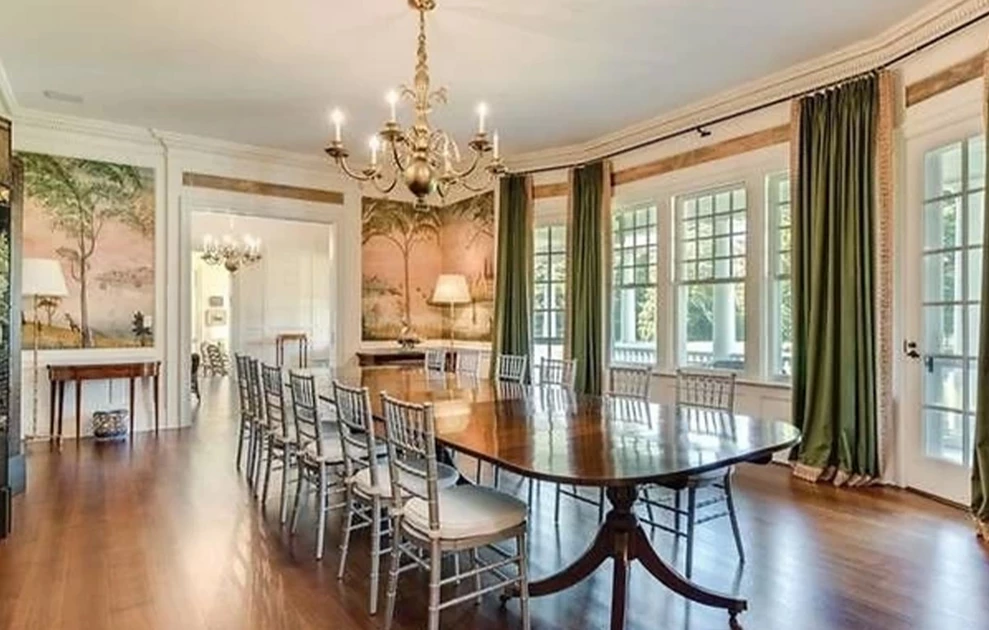 Η κατοικία διαθέτει 10 υπνοδωμάτια, 10 μπάνια και πολλούς άνετους χώρους με βιβλιοθήκες, τζάκια και τραπεζαρίες έκτασης 1.200 τετραγωνικών μέτρων.
