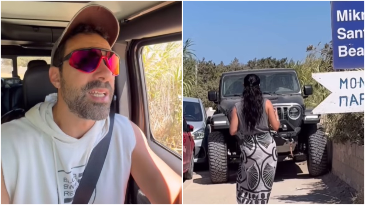 Η Χριστίνα Μπόμπα σε ρόλο παρκαδόρου… βοηθώντας τον Σάκη Τανιμανίδη που οδηγούσε τζιπ σε στενό δρόμο – Δείτε βίντεο