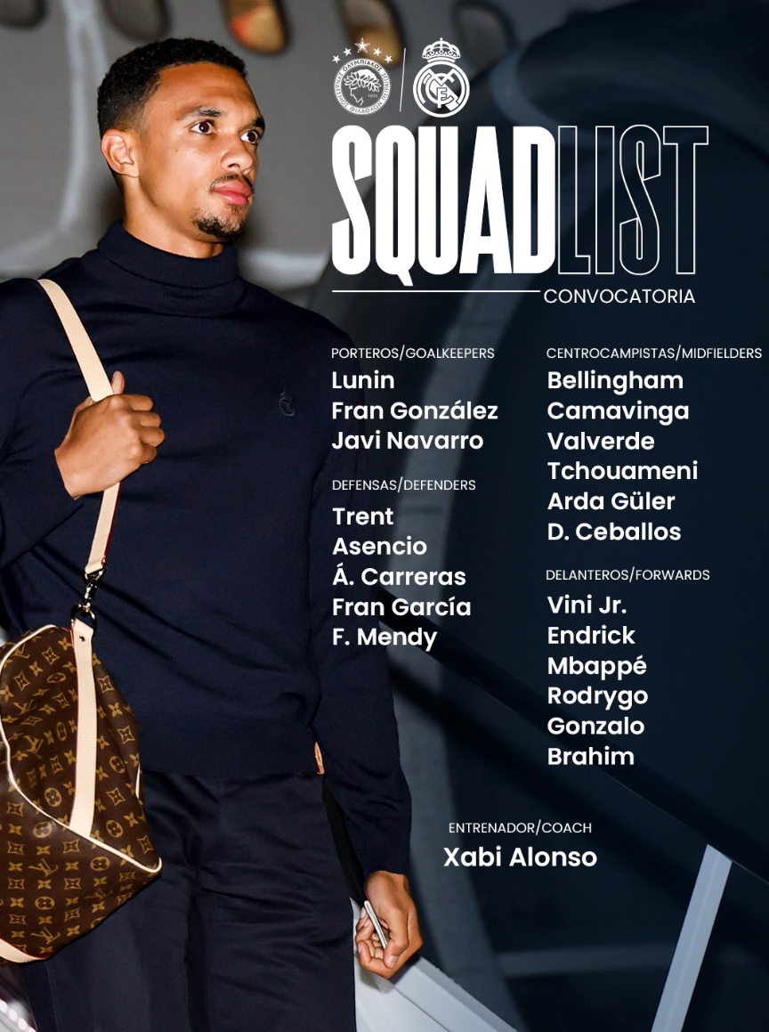 Την ίδια ώρα, οι Καμαβινγκά, Τσουαμενί συμπεριλήφθηκαν στην αποστολή και είναι διαθέσιμοι, ενώ ο Αλόνσο προβληματίζεται για την αμυντική γραμμή που θα παρατάξει καθώς υπάρχει μόνο ένας καθαρός στόπερ (Ασένθιο) και παρτενέρ του θα είναι είτε ο Καρέρας είτε ο Τσουαμενί.