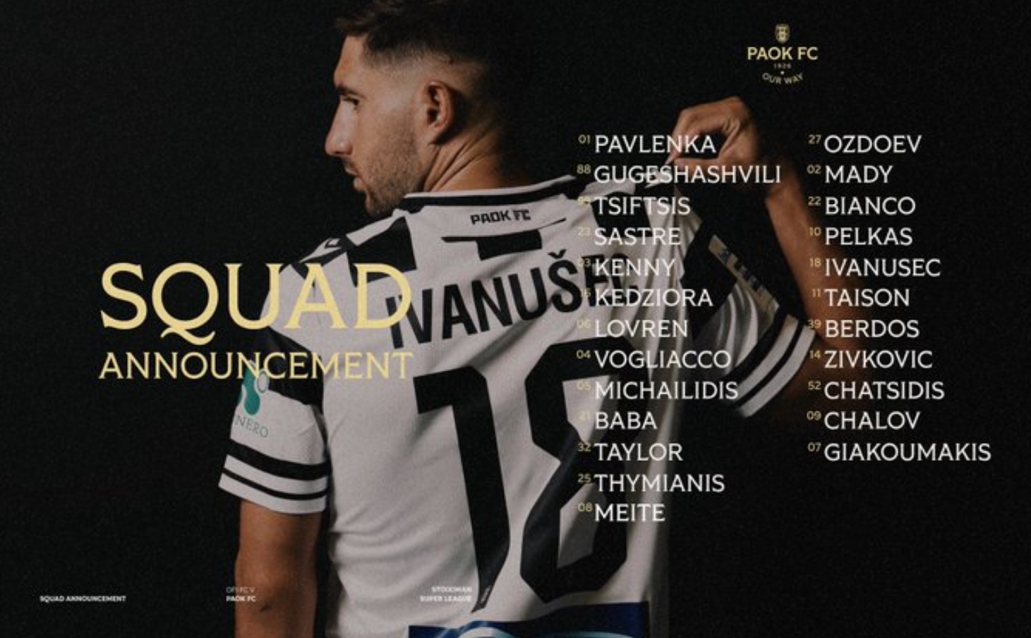 Στην πρώτη τους αποστολή με τα «ασπρόμαυρα» βρίσκονται οι Μπιάνκο-Βολιάκο, όπως και ο 17χρονος Δημήτρης Μπέρδος, δίνοντας μία έξτρα λύση για τα «φτερά» της επίθεσης.