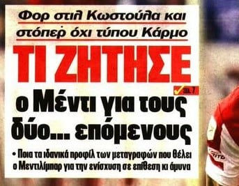 Ο Μεντιλίμπαρ έχει ξεκαθαρίσει στους ανθρώπους του Ολυμπιακού ότι προτιμά έναν πιο δυναμικό, μαχητικό και “εργατικό” στράικερ, έναν φορ δηλαδή τύπου Κωστούλα: Που μπορεί να πιέσει, να κινηθεί στο χώρο, να παίξει με πλάτη αλλά και να βγάλει ένταση στο παιχνίδι. Έναν επιθετικό που να ταιριάζει στην πίεση που ζητά στο επιθετικό τρίτο και στην υψηλή ενέργεια που θέλει από την ομάδα του.