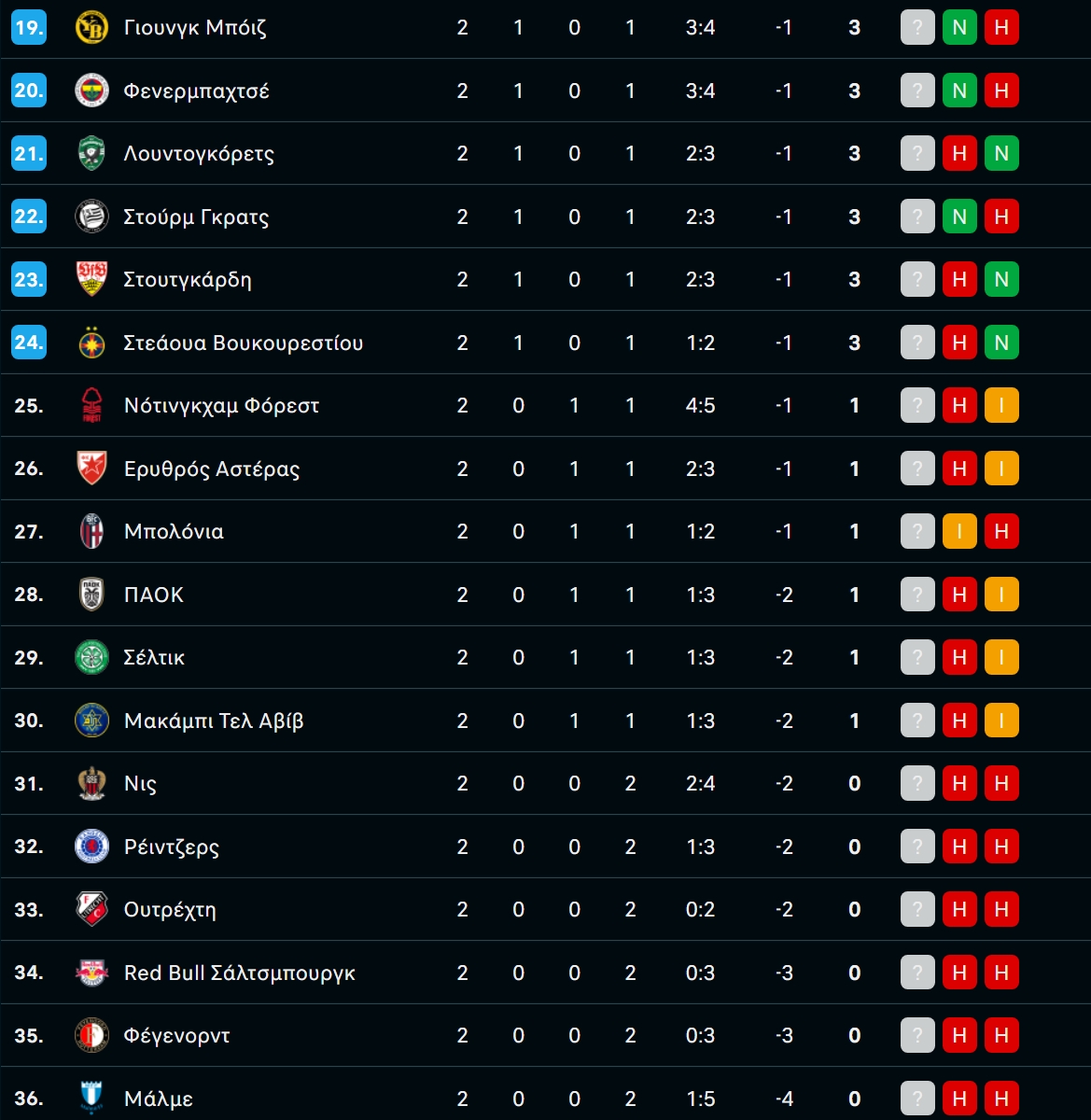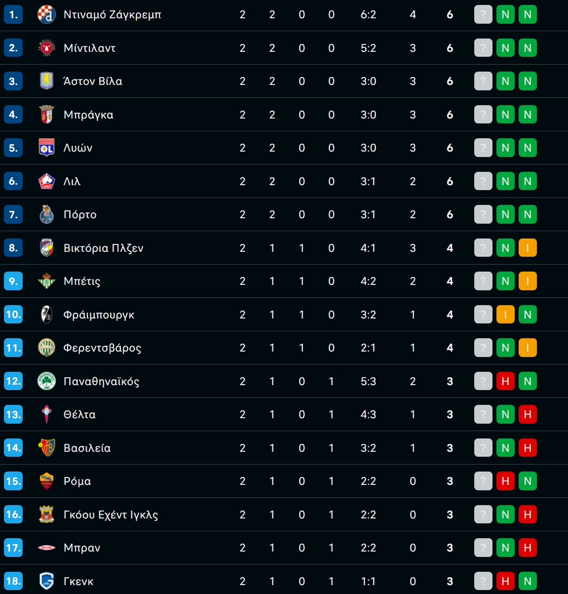 Europa League: Η βαθμολογία της League Phase μετά την ολοκλήρωση της 2ης αγωνιστικής!