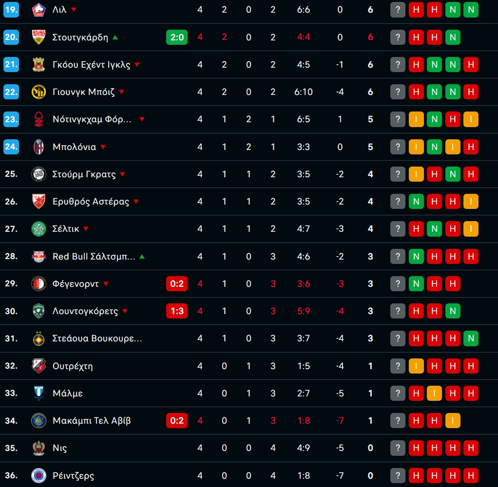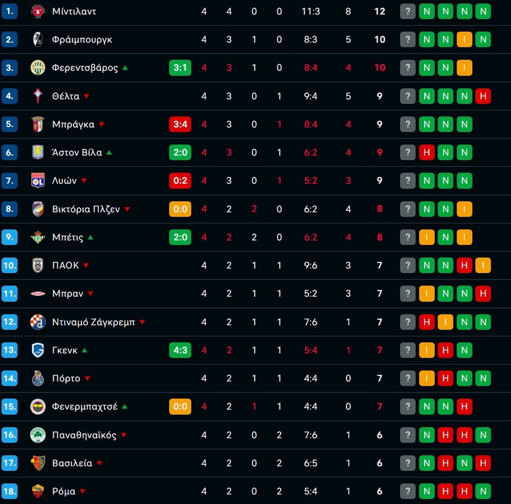 Europa League: Η βαθμολογία της League Phase μετά την ολοκλήρωση της 4ης αγωνιστικής – Σε ποια θέση βρίσκoνται ΠΑΟΚ και Παναθηναϊκός